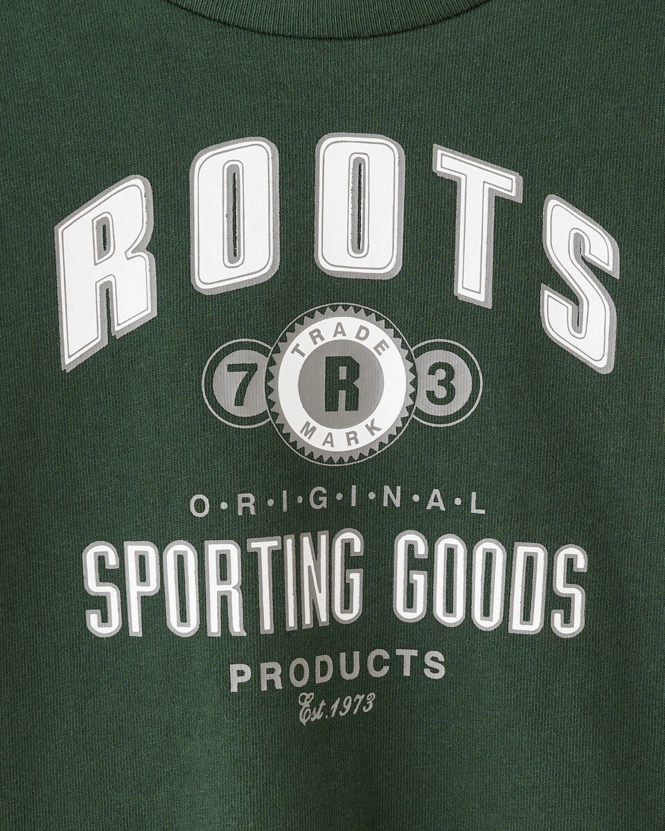 We hit rewind all the way back to 1992, with our Sporting Goods Heritage Collection. This t-shirt is an iconic ’90s gender-free style, taken from the Roots archives and re-issued for 2023.