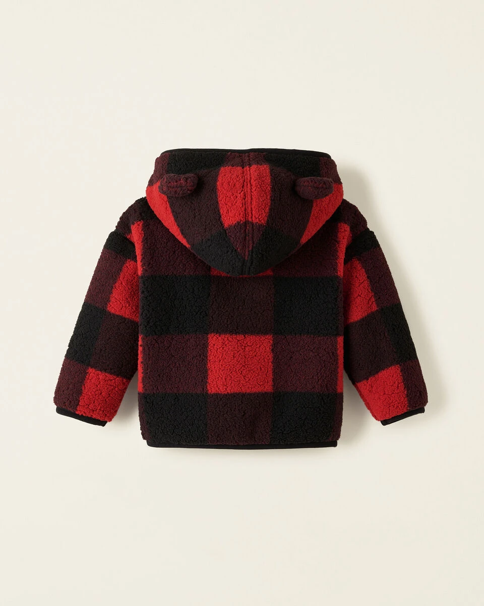Keeping your little one warm is easy with our Baby Shearling Fleece Jacket. The inside has our plushiest microfleece for extra coziness, and a super cute hood with bear ears.