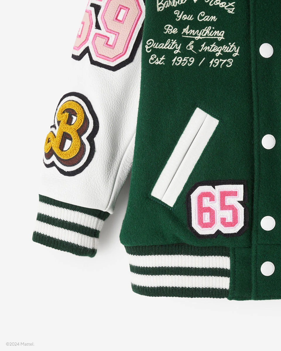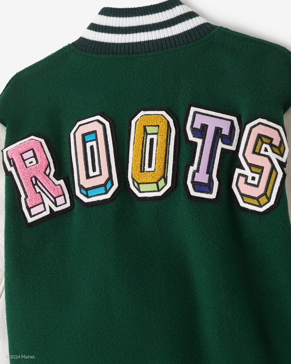 A playful collaboration that encourages us to dream big and feel empowered. It’s our classic sportswear aesthetic, painted through a pink lens — meet the Barbie™ X Roots 65 Varsity Jacket.