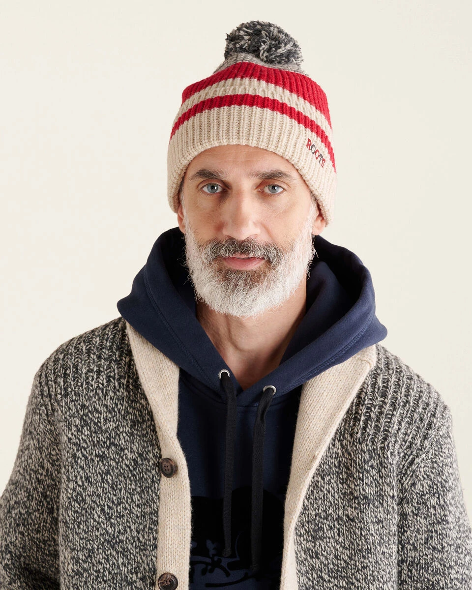 Keep your head and ears snug in style, our classic toque just got a Cabin stripe upgrade.