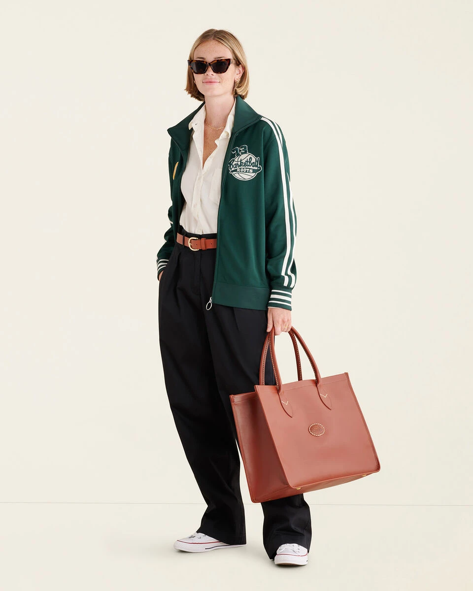 - Two exaggerated slash pockets at front