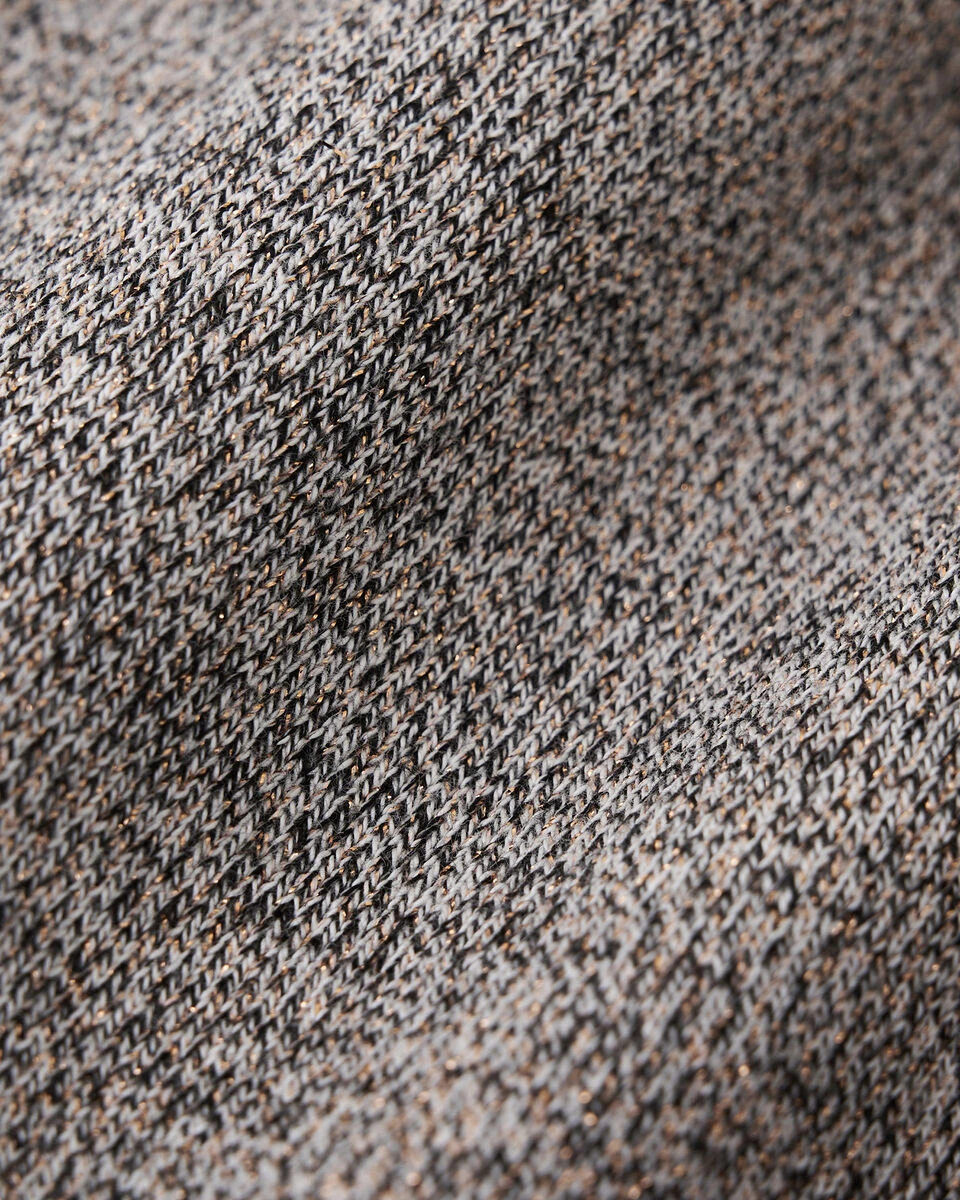 51% recycled polyester, 44% organic cotton, 5% metallic fleece