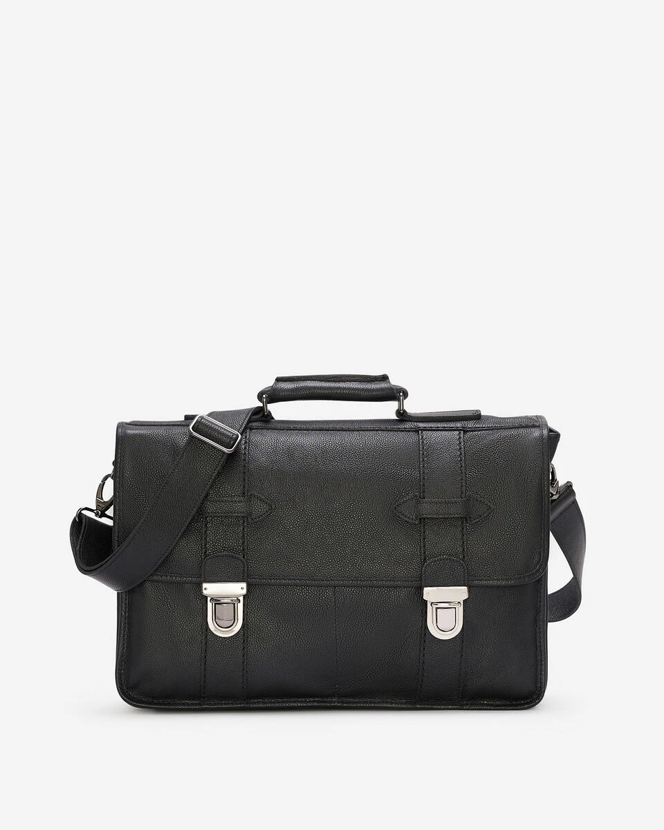 - Double buckle closure with two interior dividers