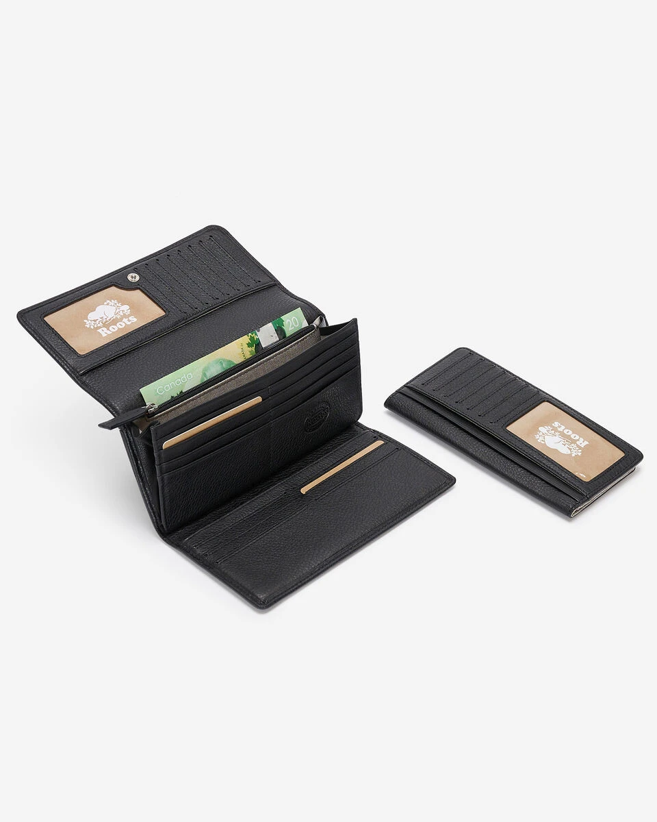 - Removable chequebook holder with ID window, 6 card slots and 6 slip pockets