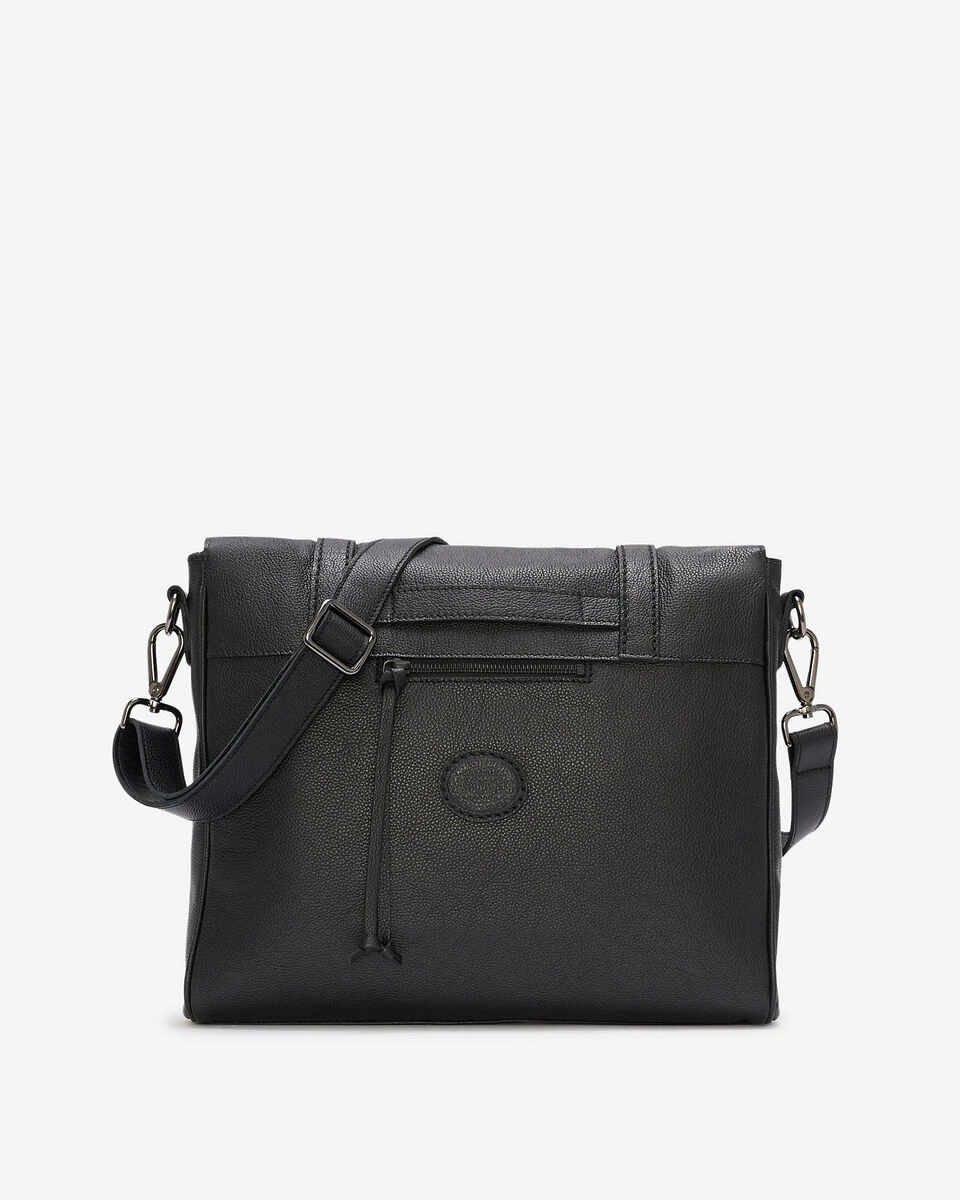 - Front zipper pocket under flap and back zipper pocket