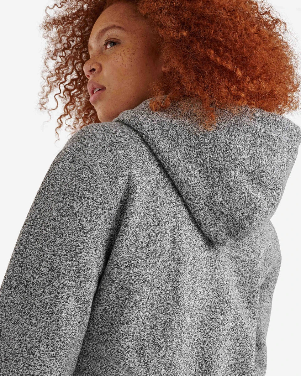 55% recycled polyester, 45% organic cotton fleece