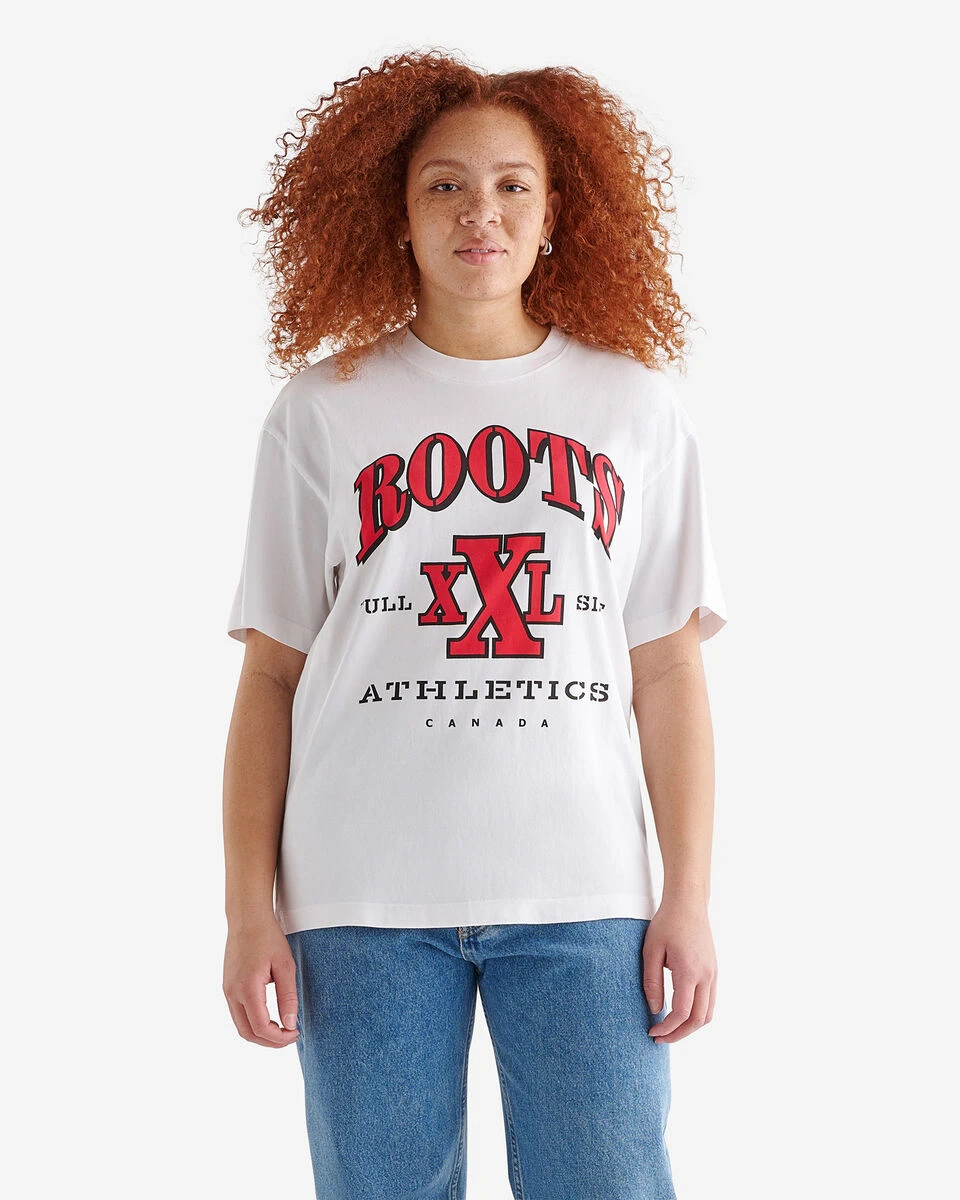 Revive outdoor style with the Reissue T-shirt — a tribute to our heritage. Adorned with iconic prints, 50th anniversary details, a perfect match for our Roots Beaver Athletics collection.