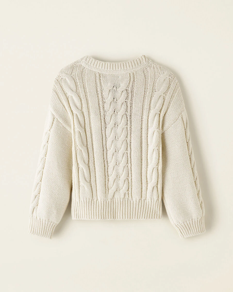 - Cable stitching detail at body and sleeves