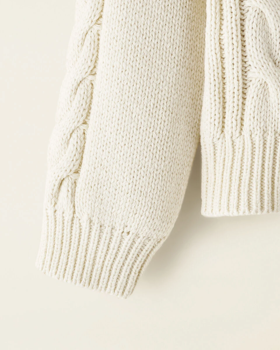 Keep them warm this winter with our Toddler Cable Crew Sweater — made in our chunkiest knit for extra coziness.