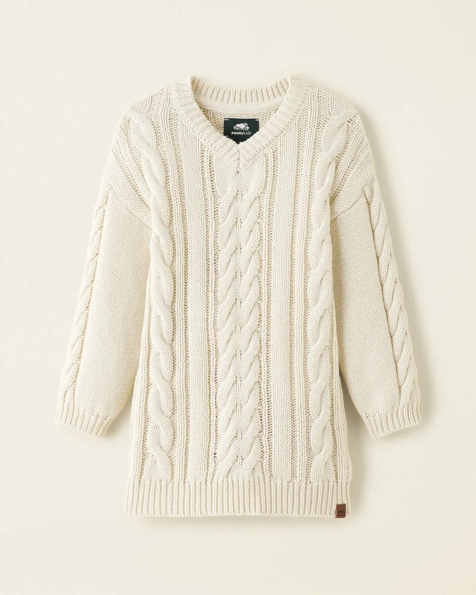 Keep them warm this winter with our Cable V-neck Sweater Dress — made in our chunkiest knit for extra coziness.