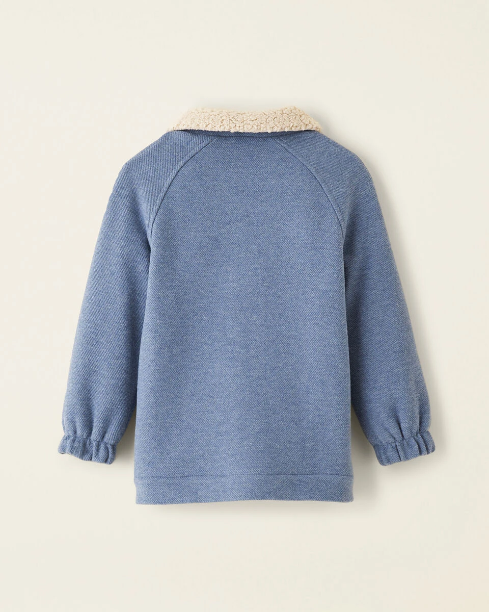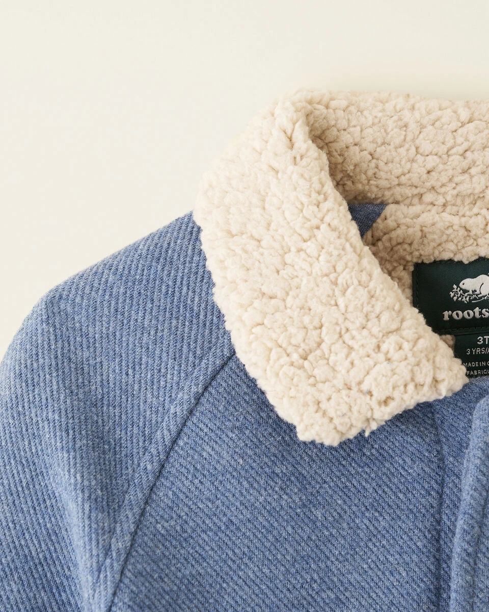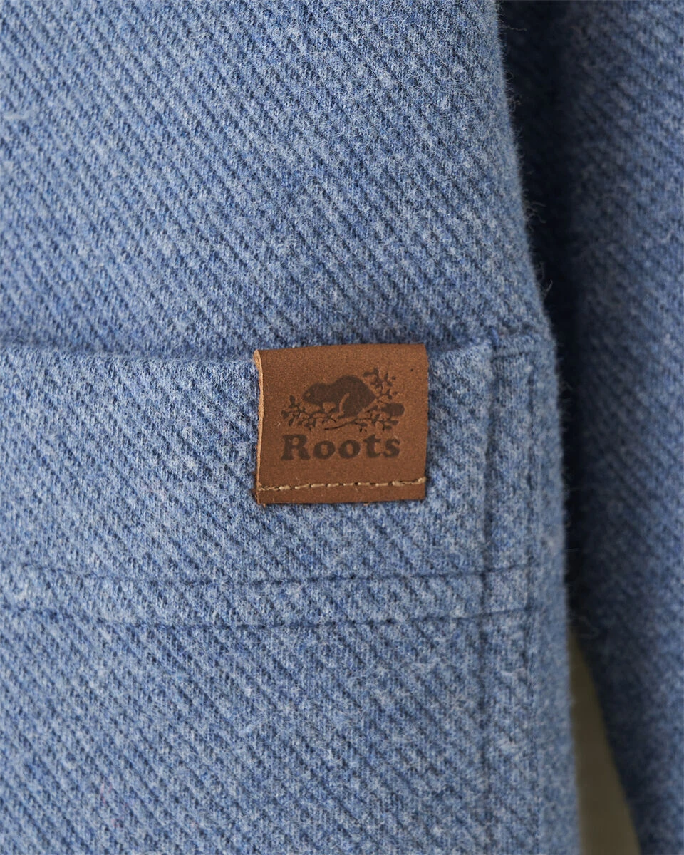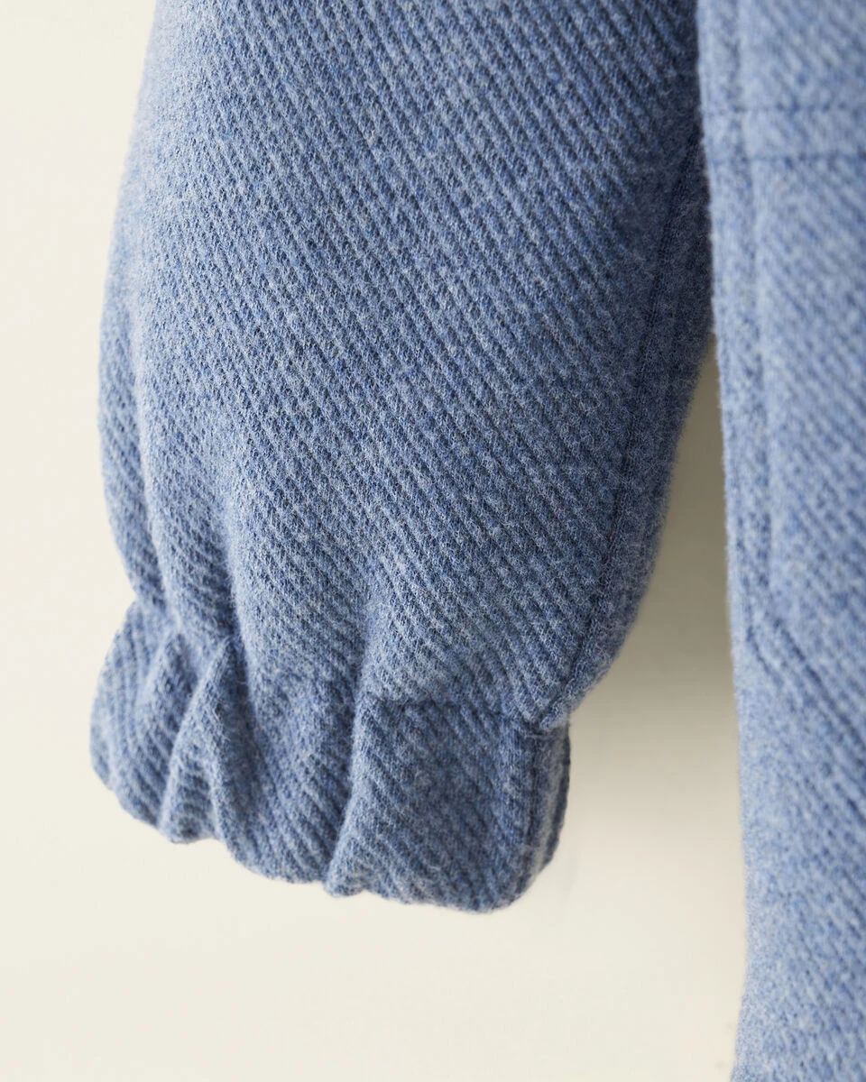 Our Junction Shacket looks like denim but has all the comfort of a knit, with a soft, brushed surface and a cozy shearling interior.