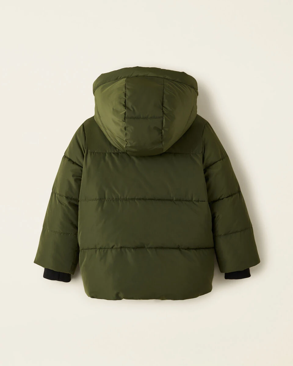 - Cozy interior ribbed knit cuffs at sleeves