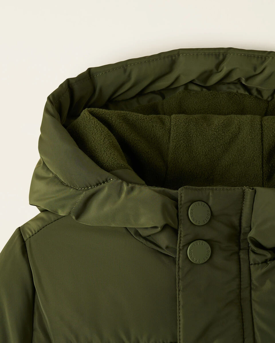- Front storm placket with snaps