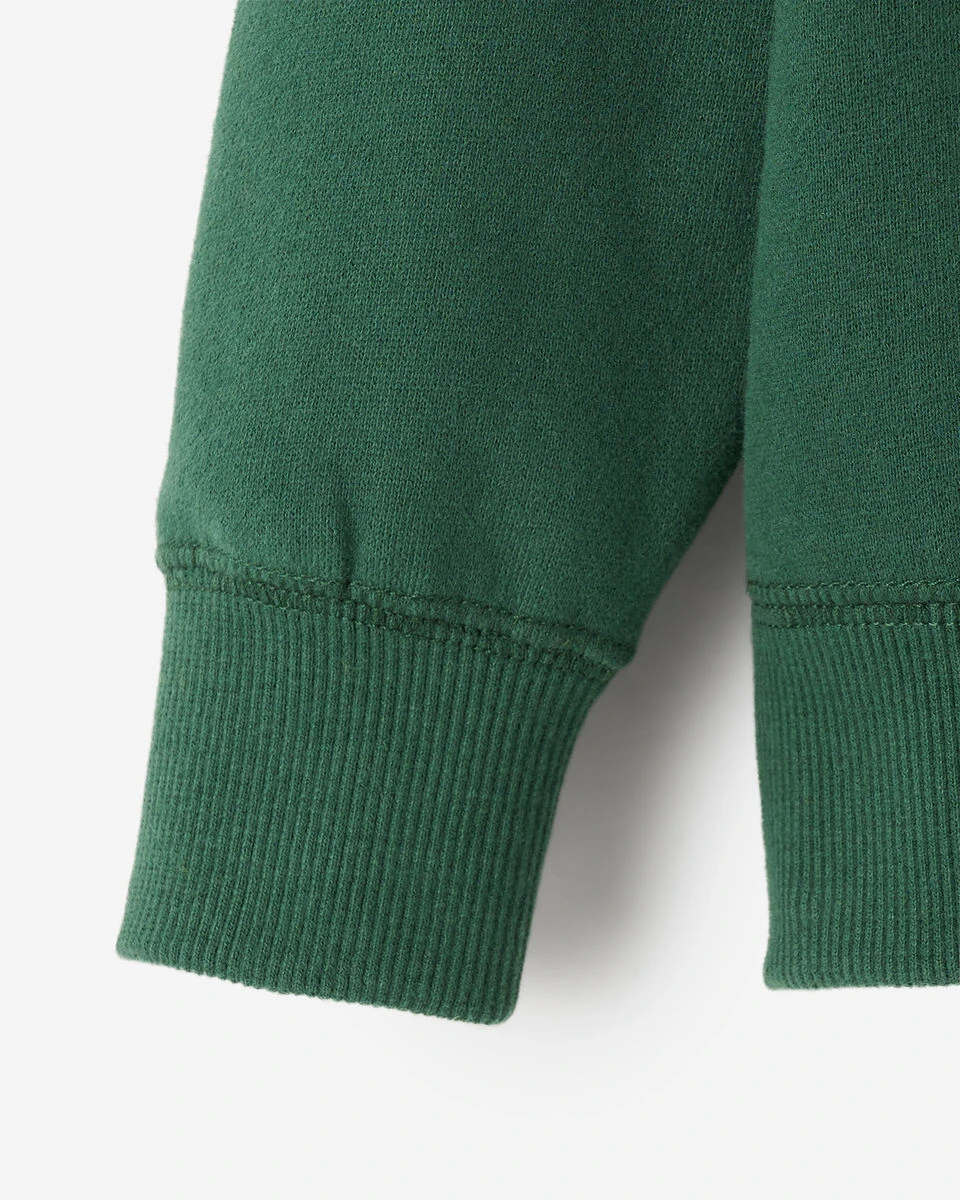 80% organic cotton, 20% recycled polyester fleece