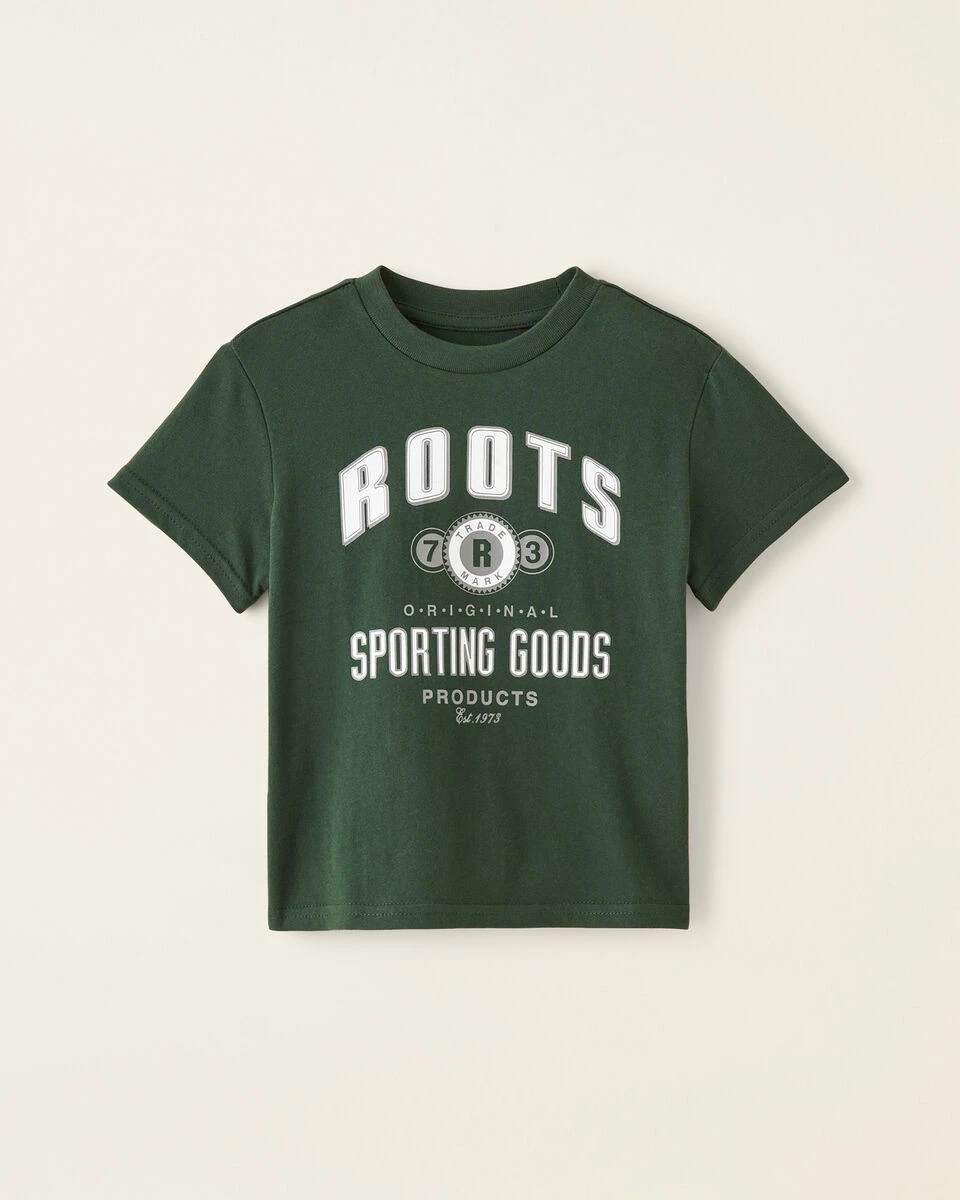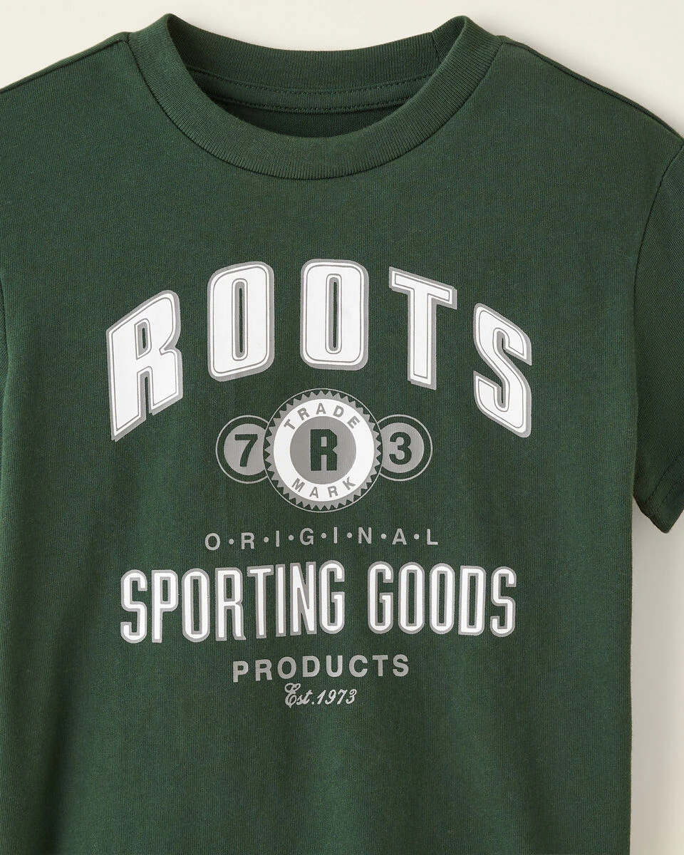 We hit rewind all the way back to 1992, with our Sporting Goods Heritage Collection. This t-shirt is an iconic ’90s gender-free style, taken from the Roots archives and re-issued for 2023.