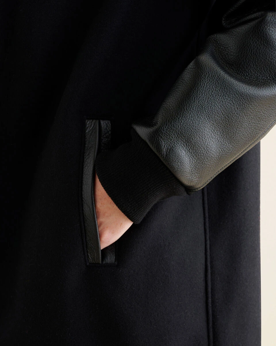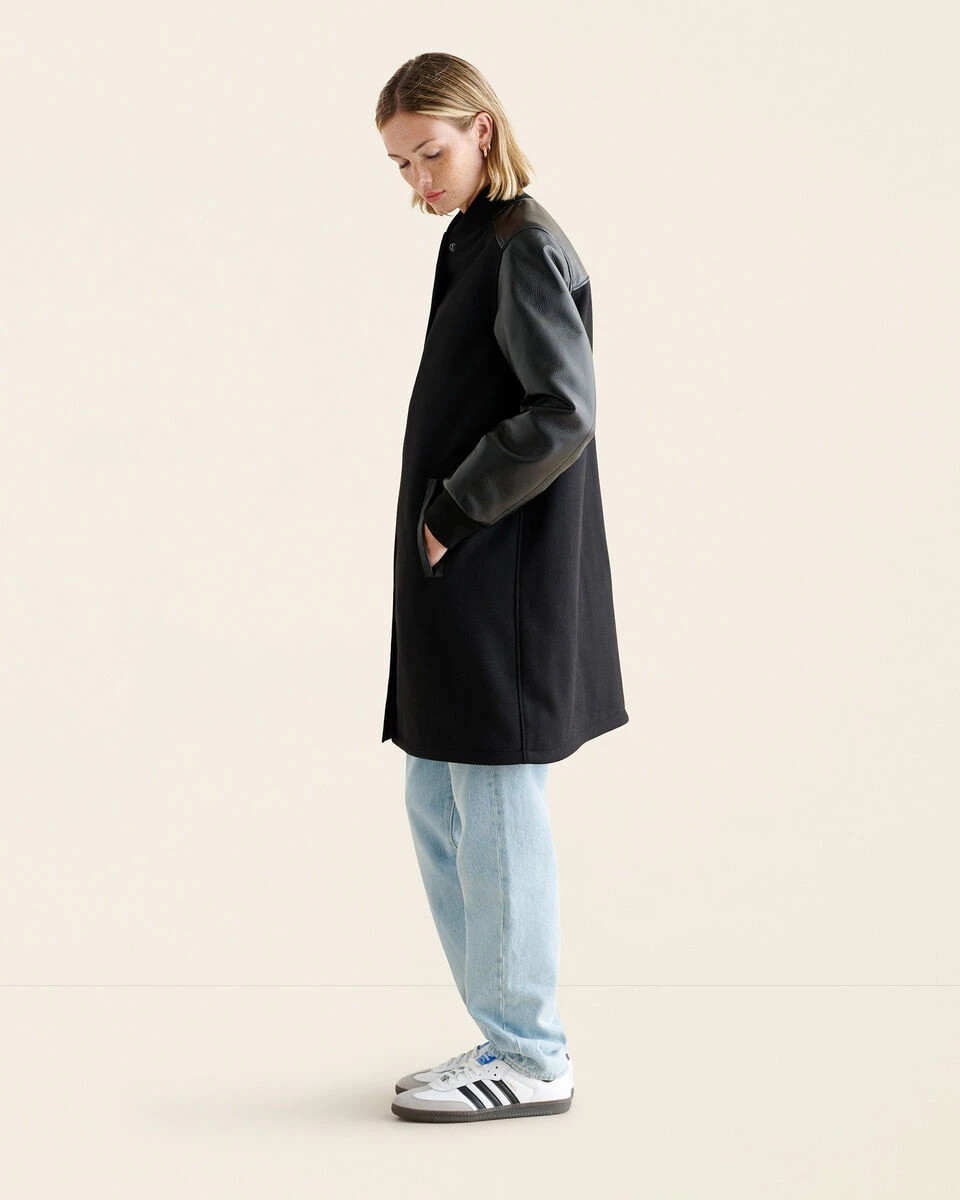 Go retro with our Womens A-line Varsity Jacket. Inspired by our classic collegiate aesthetic, this handmade piece will never go out of style.