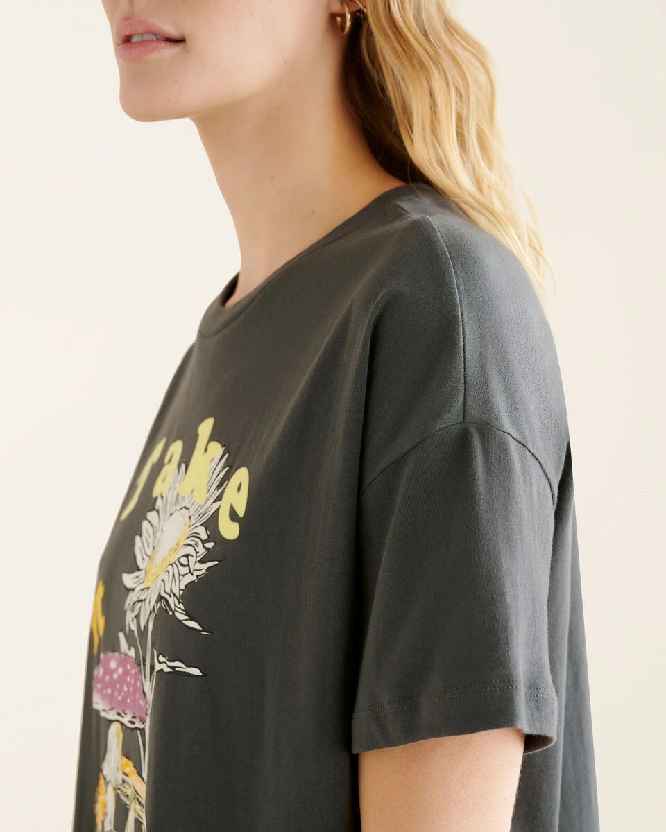 - Colourful graphic in flock and print at front